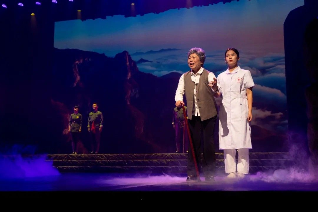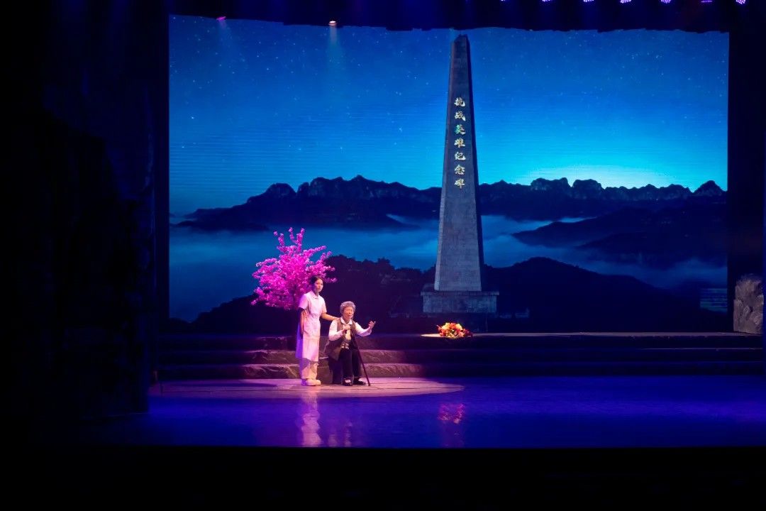 演出在庄严的太行之巅场景中开启:百岁老人李冬雪在护士陪伴下,于英雄纪念碑前缅怀战友,悠远钟声将时光拉回80年前烽火岁月,一段用生命书写的科研传奇就此展开。